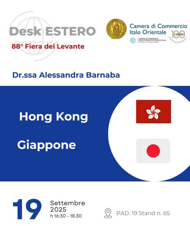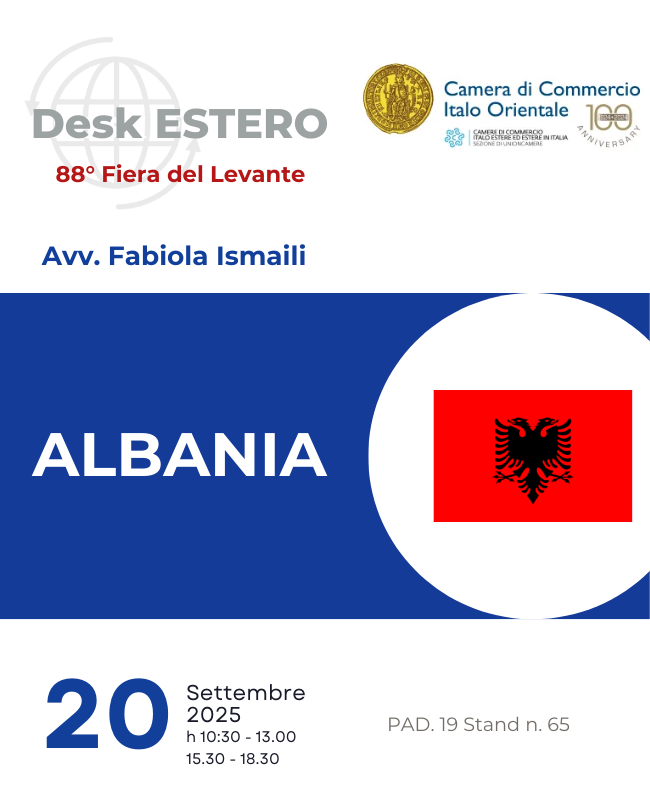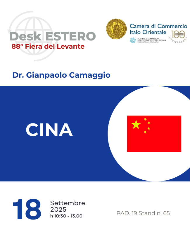 La Camera di Commercio Italo Orientale, fondata a Bari nel 1924, promuove e favorisce le relazioni economiche tra l’Italia ed i Paesi Esteri, con particolare riguardo a quelli Orientali e Mediterranei.